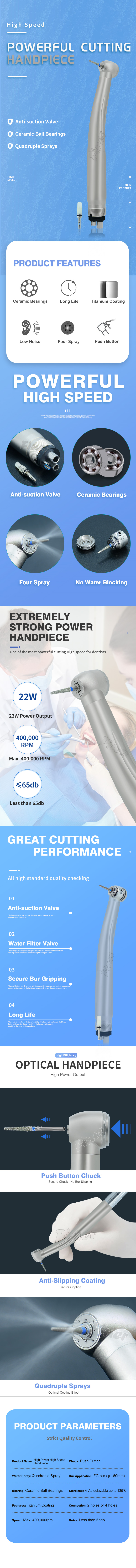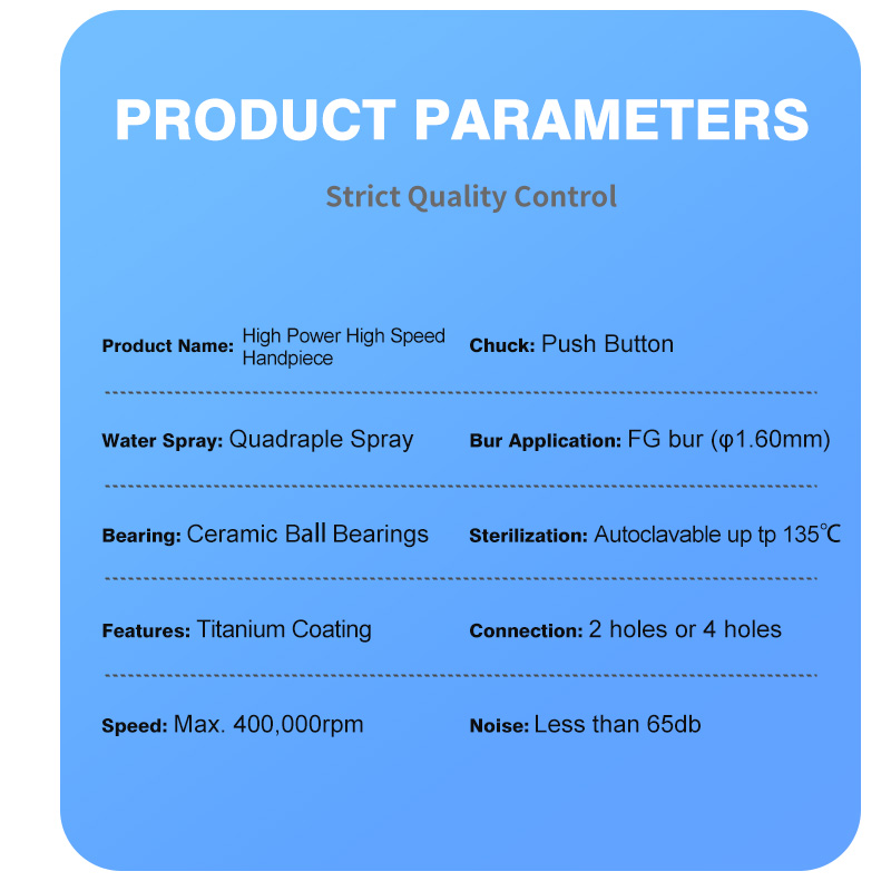 Turbine Power Source: Pneumatic (air-driven) systems generating speeds of 28,000–440,000 RPM, suitable for precision drilling and cutting
