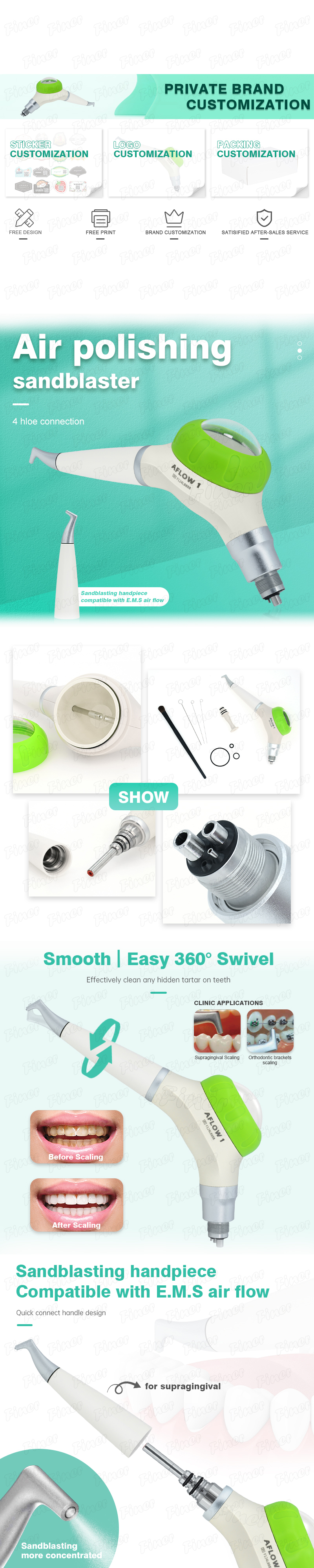 Standard Connection: 4-hole dental interface, compatible with major dental units and E.M.S. airflow systems.