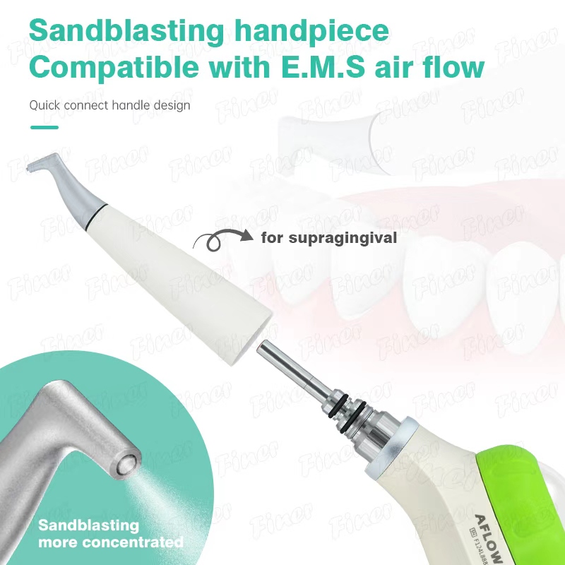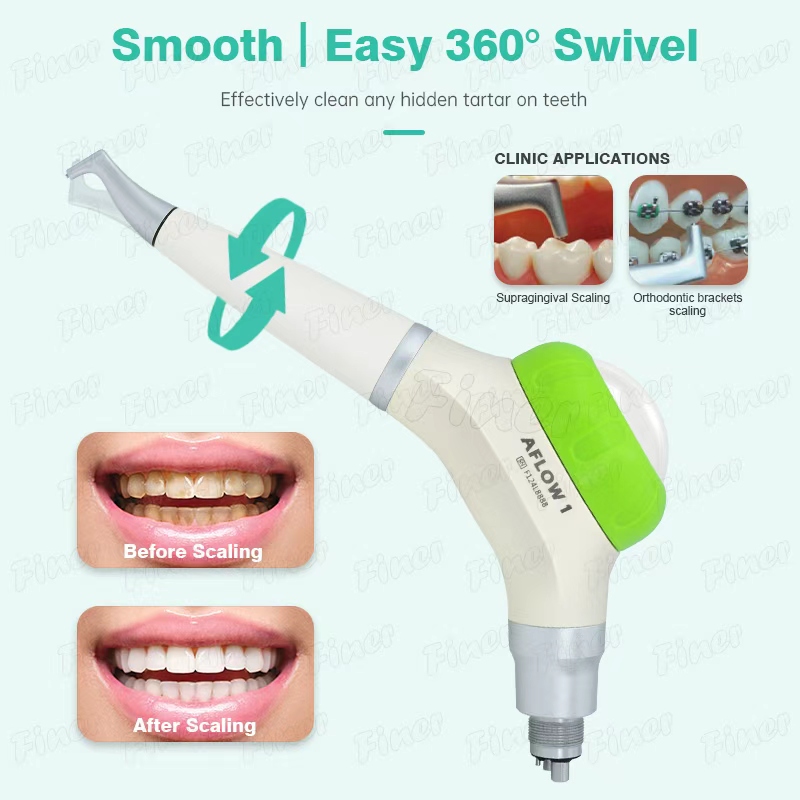 Efficient & Concentrated Cleaning: The metal injection-molded nozzle delivers more concentrated powder flow (2.4-3.2g/min), significantly improving the removal of calculus, plaque, and orthodontic adhesive, especially in hard-to-reach areas.